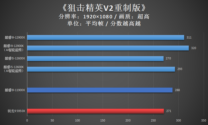 测试小结:英特尔第12代台式机处理器的游戏性能堪称进步非常大,即使是定位中端的酷睿i5-12600K,它的游戏性能表现也是全面超越11代旗舰酷睿i9-11900K的。