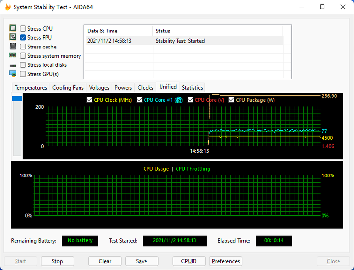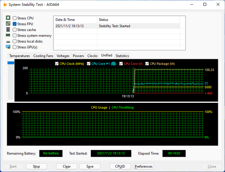 利用AIDA64 FPU烤机测试,能够直观地了解处理器的满载温度表现。