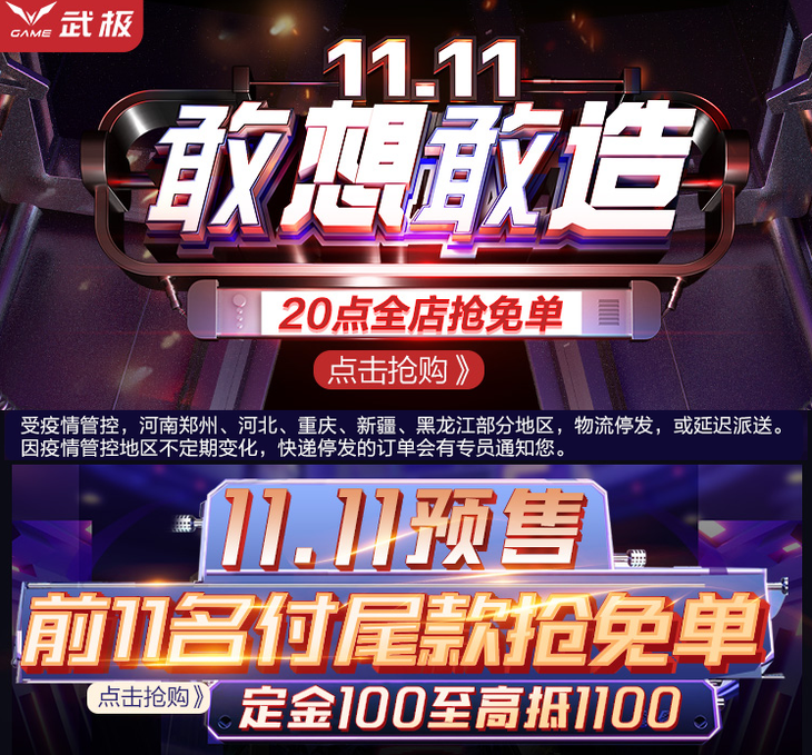 武极游戏主机11.11预告:前11名付尾款赢免单!