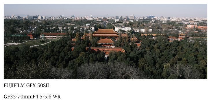 富士GFX50S II也是目前富士GFX系列中画幅无反中拥有最多19种胶片模拟的相机,上面所拍摄的照片就使用了Classic Neg.经典负片胶片模拟模式,直出色彩非常适合古老的北京城。同时可以胶片模式的基础上再叠加曲线、色彩强度、色彩偏移等色彩设定,在拍摄前期就能达到我预期的色彩效果,在一定程度上减少了后期处理照片的时间。
