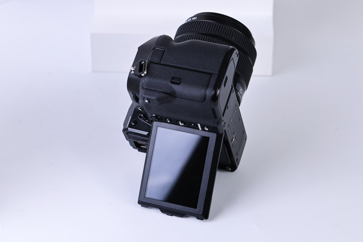 背面的3.2英寸触摸式液晶显示屏具有236万像素和100%覆盖率,可三向倾斜,满足高低角度拍摄及电子取景器无法使用的取景角度。