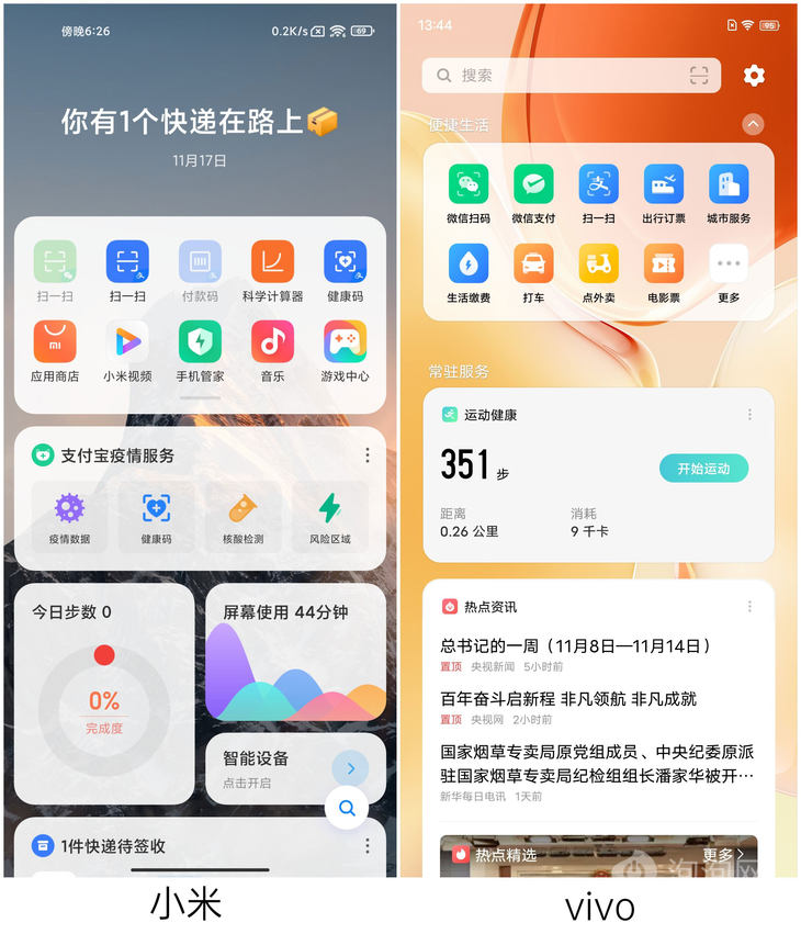其中vivo X70 Pro、小米11两款机型的负一屏功能基本与iQOO和红米手机系统一致,因此不独立加入iQOO和红米机型对比,所有横评手机系统、负一屏均升级为当前机型最新版本。