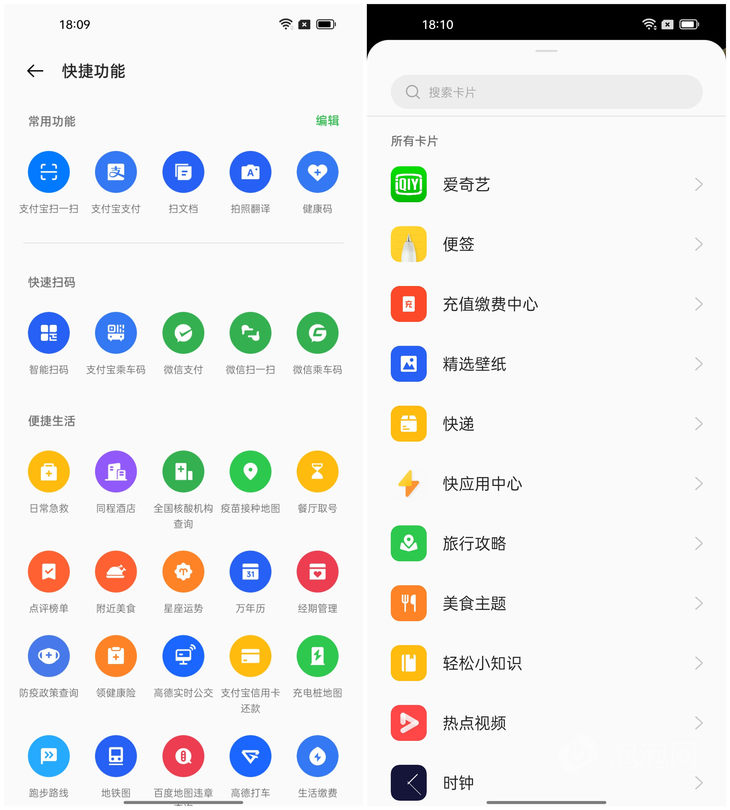 OPPO负一屏快捷功能应用数量和vivo差不多,已经可以满足很多场景的需求。 OPPO负一屏卡片数量不多,但常用功能基本都能找到。OPPO的卡片应该都是官方定制的,所以在功能和视觉效果上都比较统一,都能保证不错的使用体验和界面效果。