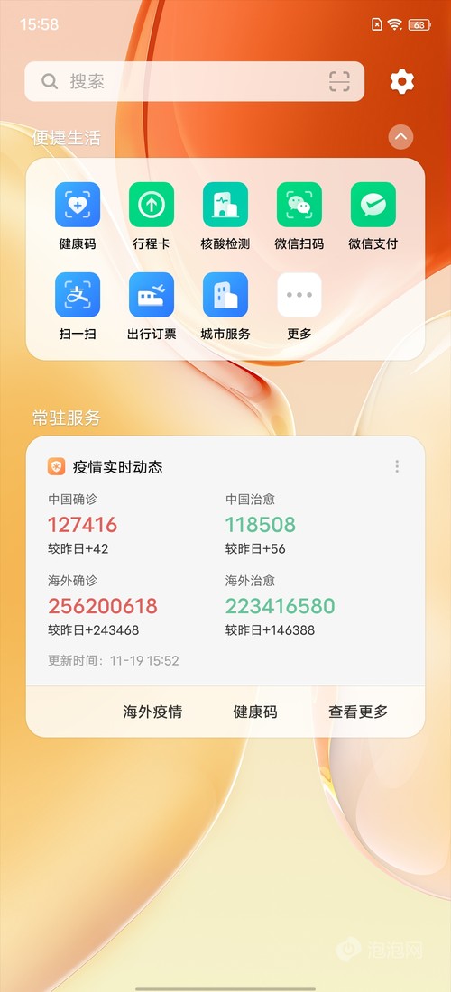 除了快捷功能,vivo支持疫情实时动态卡片,添加后在负一屏就能直接查看疫情实时数据,点击跳转还能查看更加详细的信息。