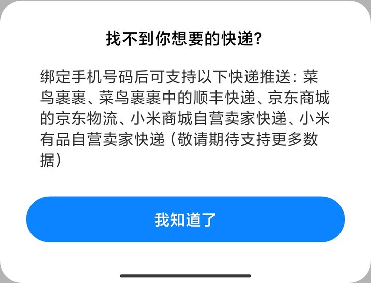 小米的快递卡片支持菜鸟裹裹、菜鸟裹裹中的顺丰快递、京东商城的京东物流等快递数据,数据来源比华为和荣耀更少一些。在测试期间有两个直接寄收的顺丰快递,小米都没有物流提醒,应该是不支持显示直接寄收的顺丰物流信息。