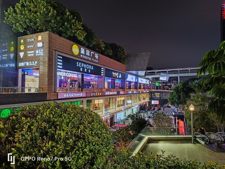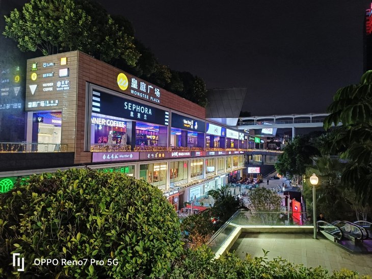 在夜拍场景,OPPO Reno7 Pro的色彩还原同样真实,默认模式下已经有不错的成像效果,对高光压制得比较到位,整体观感出色。在夜景模式下,画面整体亮度得到明显提升,增加暗部细节,画面纯净度也得到提升。