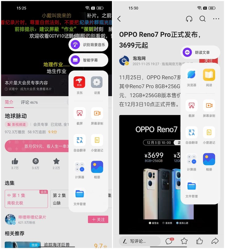 ColorOS 12系统内置智能侧边栏2.0,能够根据使用场景推荐不同的实用工具,包括智能字母、识别背景音乐等,有效提升便利性。用户还可以利用跨屏互联功能,在不同设备之间高效协同工作。
