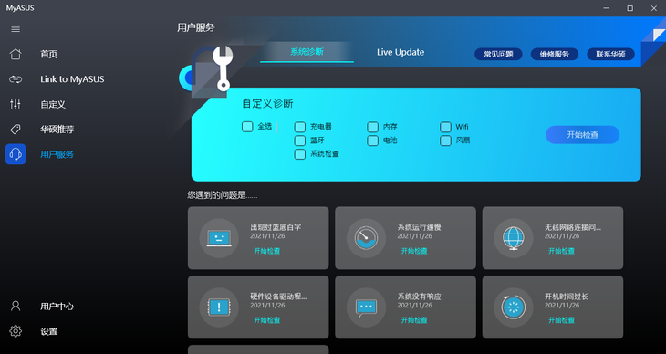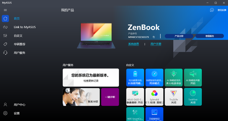 MyASUS还可以帮助诊断电脑系统状况,更新驱动程序等等。