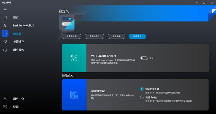 MyASUS是华硕灵耀X双屏Pro的辅助控制中心,在这里可以对这款笔记本进行一些实用功能的设置。