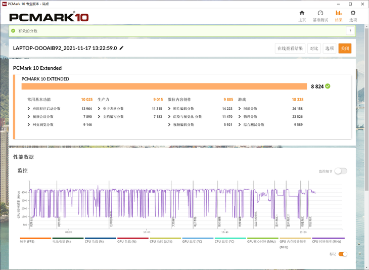 从PCMARK 10的测试结果来看,这款笔记本不仅在常用基本功能、生产力、数位内容创作的的成绩都很好,而且游戏的成绩也是很好的,设计师们在工作之余也可以玩一玩大型3A游戏,放松一下心情。