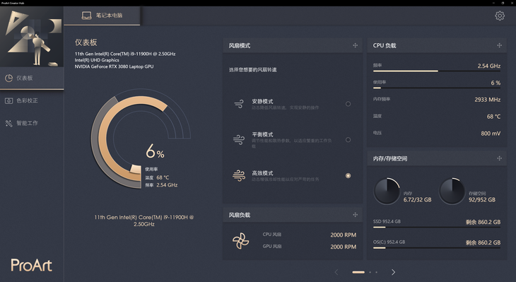 在软件层面上,华硕还为这款笔记本设计了ProArt Creator Hub创艺控制中心,在这里可以对这款笔记本进行很多专业的设置,以便满足设计师们进行专业创意设计的需求。更高效、更智能,提高工作效率。