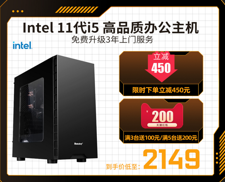 攀升台式电脑主机十代i5 10400/11400商用台式机>>购买链接
