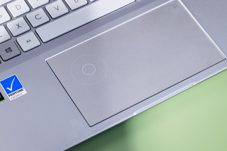 华硕灵耀Pro14还有一处颇具创新的设计,那就是在触控板上面特别设计了一枚DialPad虚拟旋钮。在特定的应用场景下,用户可以通过手势轻松唤醒DialPad虚拟旋钮,对其进行操控。目前该虚拟旋钮已可深度适配Adobe旗下的诸多软件,例如PR、PS等等,能够助力设计师们在创意设计时更加得心应手。