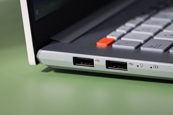 这款笔记本的机身左侧设计了两个USB2.0接口,以及指示灯。