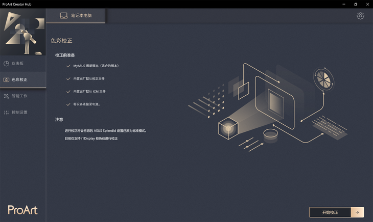 利用ProArt Creator Hub,可以对华硕灵耀Pro14这款笔记本进行屏幕的色彩校正。