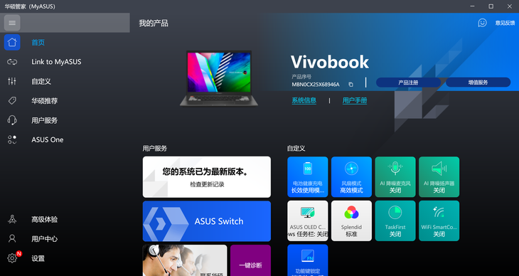 MyASUS是华硕灵耀Pro14的辅助控制中心,在这里可以对这款笔记本进行一些实用功能的设置。