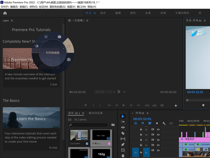 打开Adobe Premiere Pro 2022,利用DialPad虚拟旋钮可以调节音量、屏幕亮度、时间轴调整、时间轴缩放、音频轨道高度这五个方面。