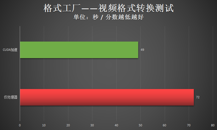 在开启显卡硬件加速之后,转换时间比单用处理器转换要快上很多,加速效果相当显著。