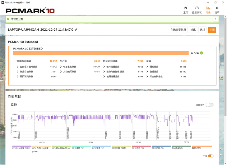 从PCMARK 10的测试结果来看,这款笔记本不仅在常用基本功能、生产力、数位内容创作的的成绩都很不错,而且游戏的成绩也是很不错的,设计师们在工作之余也可以玩玩游戏,放松一下心情。