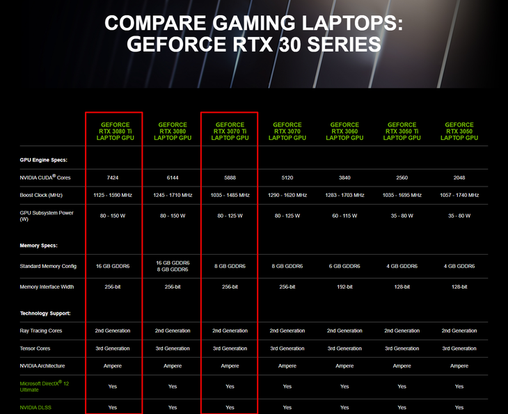 NV发布RTX 3080 Ti 和3070 Ti笔记本显卡