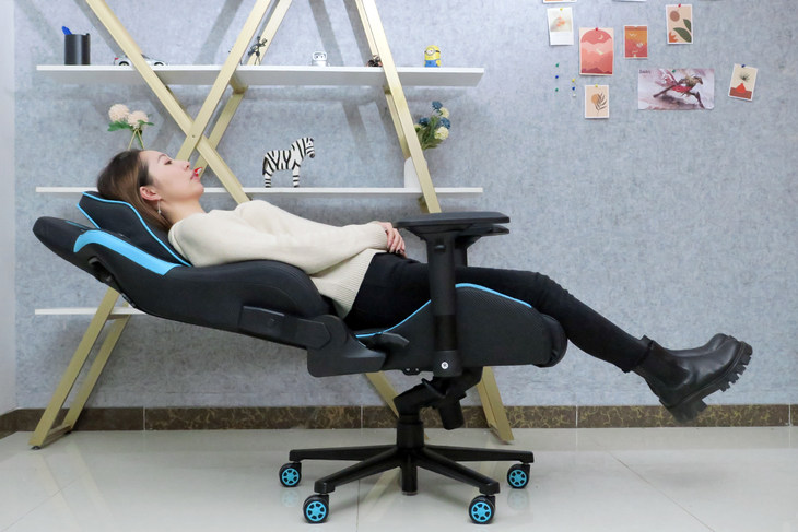 基于高强度防爆青蛙底盘和2.0mm壁厚铁架,雷神E101未来战士电竞椅支持160°的椅背倾斜,并且可锁定椅座15°逍遥角度,游戏玩累了或者午休的时候可轻松做到“躺平”,即便双脚离地也非常的平稳。值得一提的是,雷神E101未来战士电竞椅在调节椅背倾斜的时候,也有一定的力道作为支持,并不会像其他的一些产品那样有种突然悬空的失重感,而且非常平稳舒适的向下倾斜,有点像飞机头等舱调节座椅时的感觉,让“躺平”变得更加优雅。