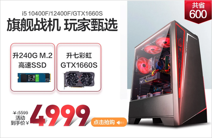 武极武神i5 10400F/12400F/GTX1660S游戏主机>>购买链接
