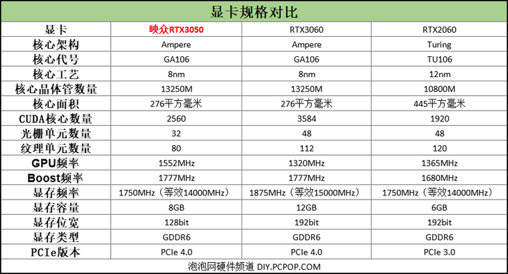 RTX3050:GA106显示核心,2560个CUDA