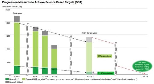 尼康集团的企业社会责任(CSR)基于“信任和创造”的企业理念,旨在在企业活动中体现该理念,为社会的可持续发展做出贡献。尼康集团在“尼康中期环境目标”中设定了以截至2031财年为目标的温室气体减排目标,并正在努力实现该目标。此外,该旨在到2050年将温室气体排放量减少到几乎为零的目标已被认证为科学碳目标(SBT)。