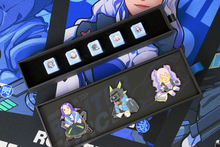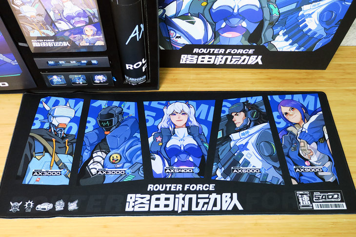 媒体专属版的《路由机动队》纪念礼盒里面到底有什么好东西呢?包括了《路由机动队》的鼠标垫、记事本、贴纸、键盘帽、纪念章、胸牌、口罩等等。