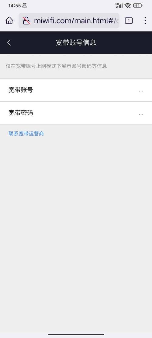 宽带账号信息界面。