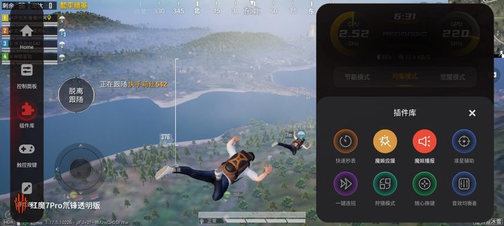 红魔7 Pro的游戏助手还内置了丰富的游戏插件库可用,在《和平精英》游戏中可以开启准星辅助,不用开镜就能快速瞄准敌人。还支持狩猎模式、随心换键、快速秒表等功能,带来全新的游戏辅助体验。