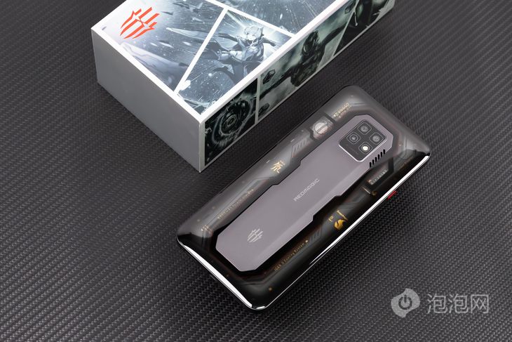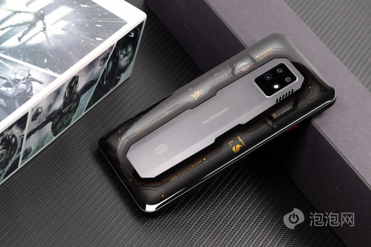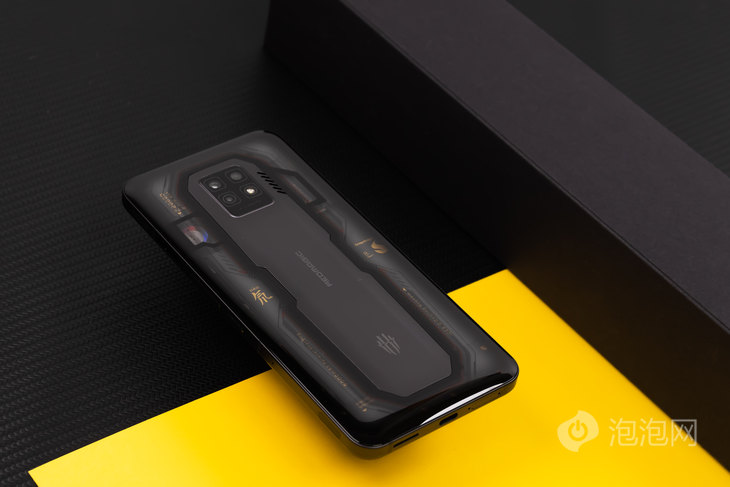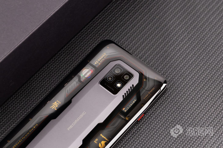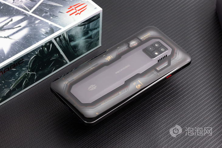 手感方面,后盖透明部分为滑面触感,中间的红魔装甲为细腻的磨砂触感,两种材质之间过渡自然,握持时可以感受到后盖两种不同的触感,手机采用的直角中框设计增添了一份硬朗感。