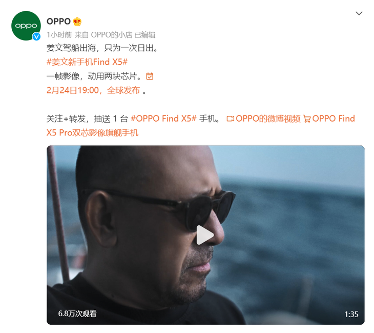 姜文再度出任OPPO影像探索家,率先体验OPPO Find X5系列