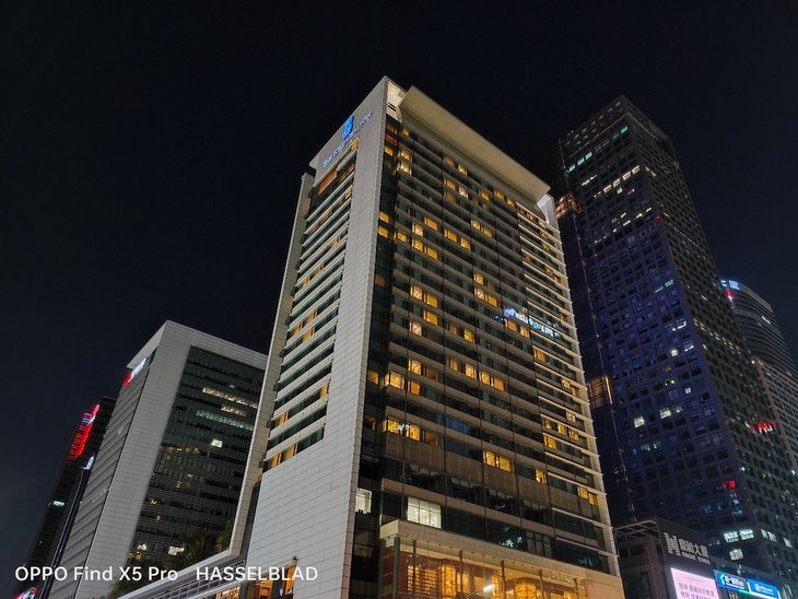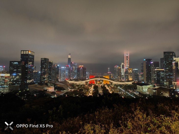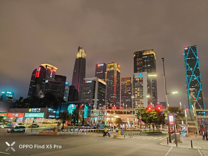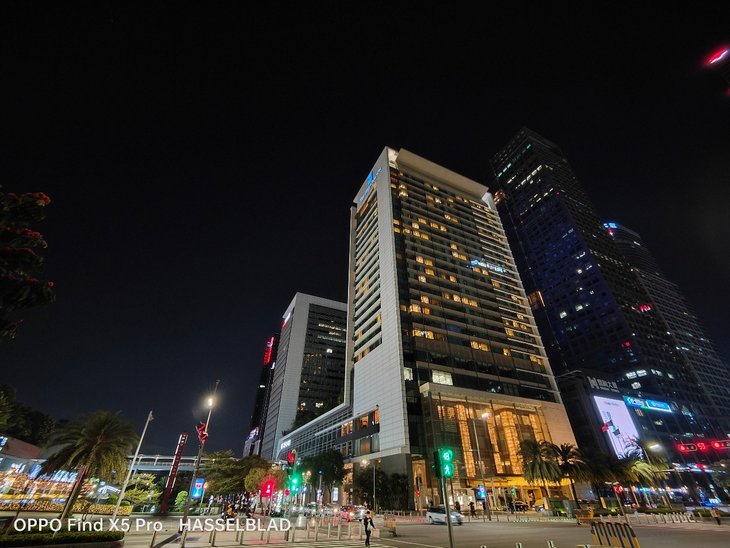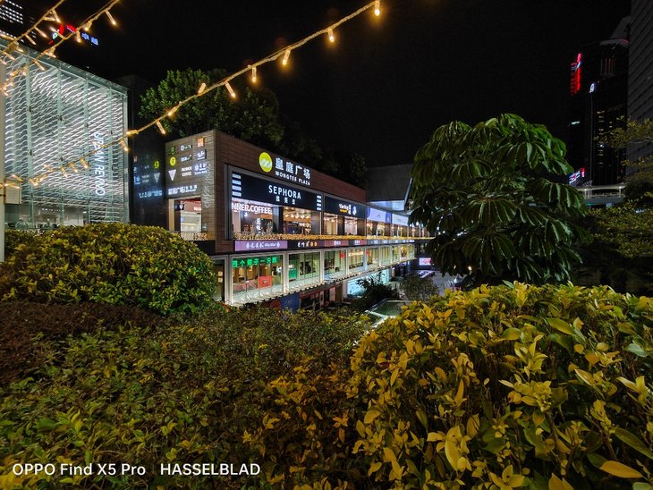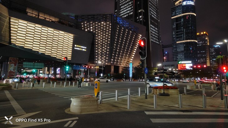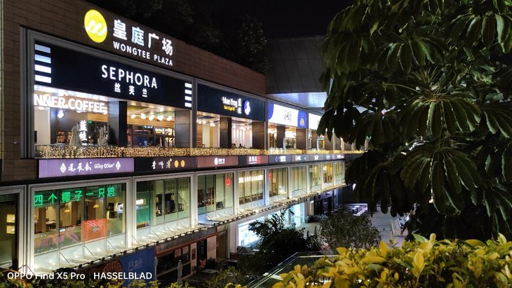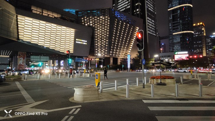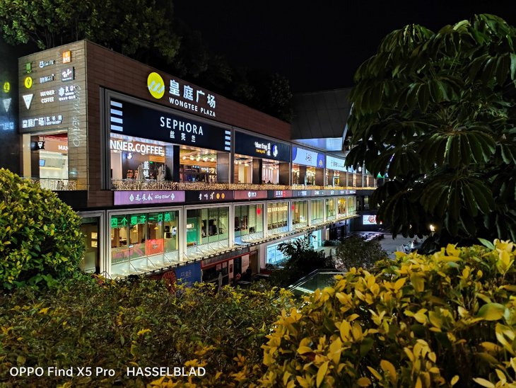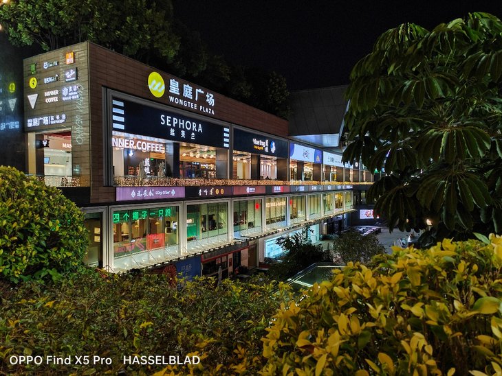在夜间拍摄上,默认模式下应该已经加入了夜景算法,OPPO Find X5 Pro主摄在画面整体亮度、暗部细节、对高光压制、纯净度等方面的表现让人满意,还支持夜景模式,复杂的夜间场景也能很容易拍出一张质感很好的照片,超广角夜间成像质量也接近主摄。