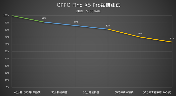 OPPO Find X5 Pro在电池和充电方面都有新升级,内置5000mAh大电池,支持80W超级闪充,50W无线快充,硬件规格比上一代均有提升,实际表现上我们都进行了实测。
