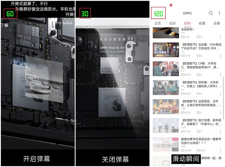 在B站播放视频时,开启弹幕60Hz模式,关闭弹幕降低到30Hz模式,滑动评论或者视频列表会快速提升到120Hz,流畅度方面基本不用担心。
