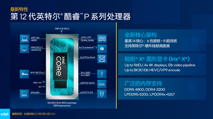 用户们的需求英特尔当然是看得见的!因此在12代酷睿上,英特尔与时俱进,推出了采用“准标压”设计的P系列处理器,希望能够助力高性能轻薄本再攀性能新高。
