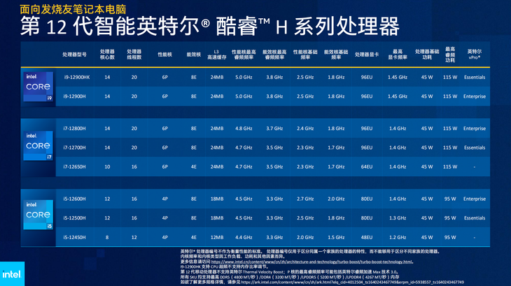 今年,英特尔面向移动平台推出了第12代英特尔酷睿移动处理器,包括专为发烧级笔记本平台设计的H系列处理器,专为高性能轻薄本平台设计的P系列处理器,以及专为现代轻薄本平台设计的U系列处理器。共三大系列处理器产品,几乎能够涵盖当今所有的笔记本细分领域。