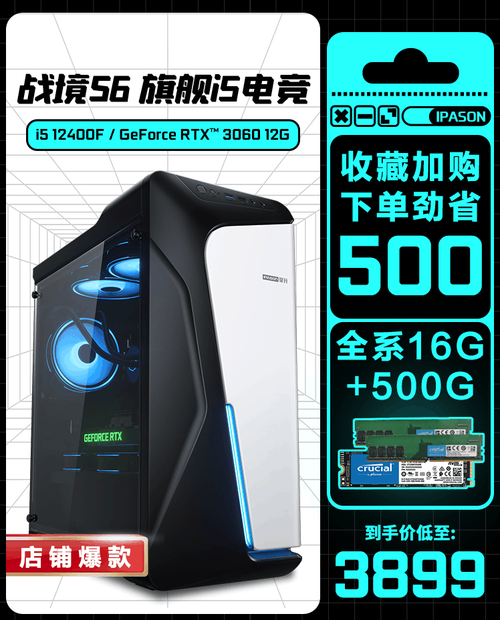 核心硬件方面,攀升战境S6高性能游戏主机(配置五)采用了12代酷睿i5-12400F处理器搭配RTX 3060显卡的硬核组合,还有B660芯片组主板、16GB DDR4-3200MHz内存、500GB固态硬盘的加持,家用娱乐、学习、办公皆不错。