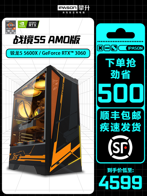 攀升战境S5 AMD版高性能游戏主机代号“红色风暴”,其(旗舰版配置五)采用了锐龙5 5600X处理器搭配RTX 3060显卡的硬核组合。