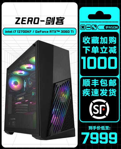 攀升ZERO-剑客高性能游戏主机定位比较高端,其(配置四)搭配有酷睿i7 12700KF处理器、Z690芯片组主板、RTX3060Ti显卡、三排CPU水冷散热器、16GB DDR4-3600MHz内存、500GB固态硬盘等等,整机性能已相当出色。