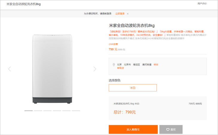 够亲民,只要799!米家波轮洗衣机8kg正式开卖