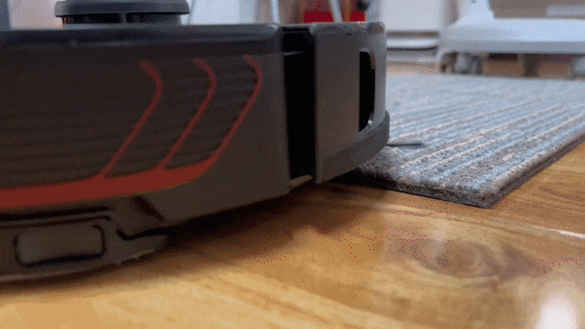 同时,边刷也会动态调整转速,在正常清扫时会以130RPM的低速旋转,避免打飞垃圾,而在沿边清扫时,则会将转速提升2.5倍,以330RPM的速度将灰尘毛絮扫出,解决墙边的清扫难题。