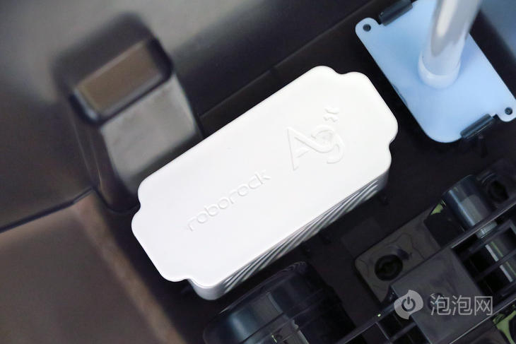 基站重新优化了拖布的清洁模块,基站对拖布的清洗主要分三步,先是清水喷湿拖布,滚刷内有9个出水孔,让喷水更加均匀。然后高速刷以600转/分钟的速度贴着拖布表面旋转,将拖布污渍清洗干净。最后是拖布刮片将拖布的污水刮除,经过这一系列的操作,拖布就可以被自动清洗干净,洗净率可以达到95%,无需人工操作,也能让拖布始终保持干净的状态。