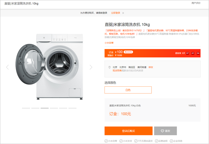 米家最新上市了一款亲民级的滚筒洗衣机,它就是米家直驱滚筒洗衣机10kg。原价1699元,目前预售下单到手价只要1479元。