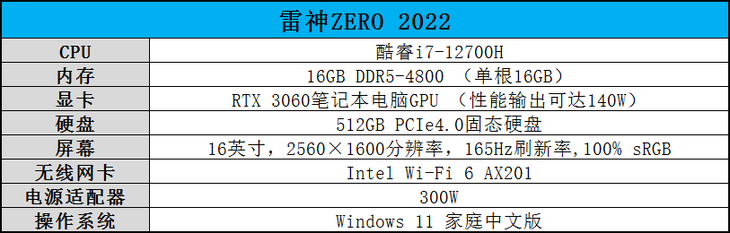 说完了显卡,再来瞧瞧雷神ZERO 2022的其它配置方面。这款游戏本搭配了第12代英特尔酷睿i7-12700H处理器,6+8核心、20线程设计,相较上一代酷睿i7处理器在单核、多核性能均大幅超越,特别是高性能混合架构设计能够平衡性能与能耗,带来全新的创作与游戏体验。同时搭配16GB DDR5-4800MHz內存,电竞游戏、创意设计、日常办体验皆得心应手。