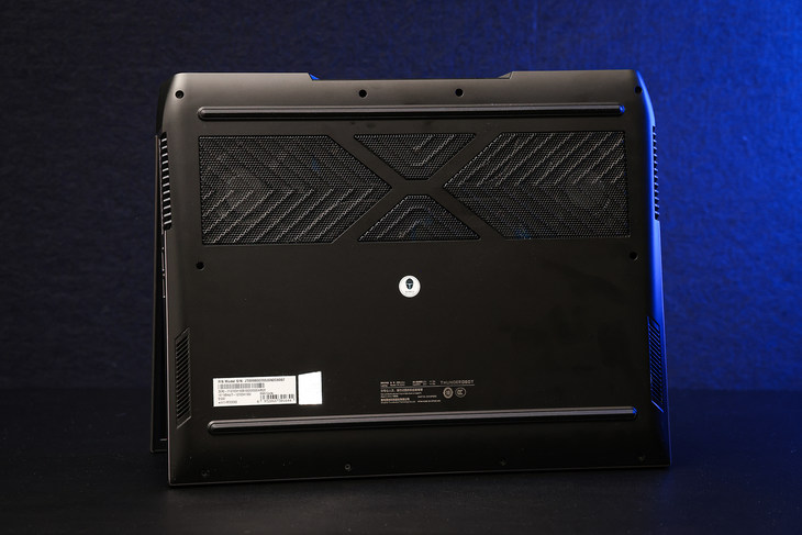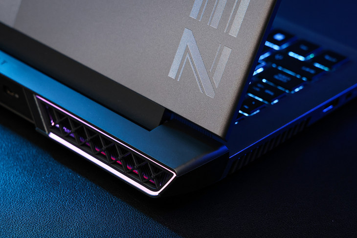 机身尾端的两处散热排风口均设计了RGB尾灯,让这款游戏本更加炫酷。