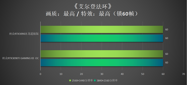《艾尔登法环》由于锁60帧,无论2K还是4K,RTX3090TI与3090均能满足,也就没有实质区别。
