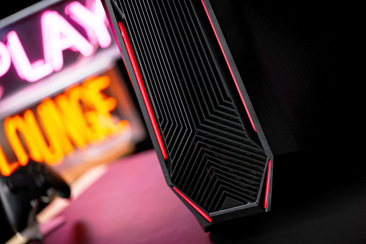 雷神黑武士烛龙水冷游戏主机的机箱设计灵感来自于《星球大战》,机箱前脸特别采用了三体六面立体设计,上面镶嵌有一枚采用雷神LOGO造型的开机键,以及4条对称的光剑式灯带,点亮主机后均会显现出了红色的灯效,如同“原力聚集”一般,散发着强大的威力!