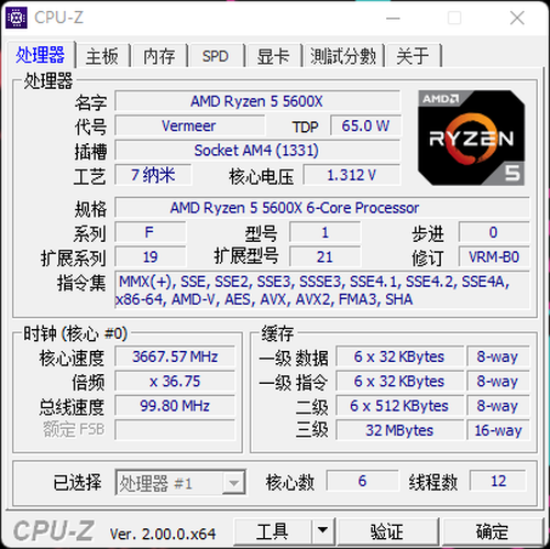 AMD 锐龙5 5600X是一款6核心12线程的处理器,最大加速频率为4.6GHz。AMD ZEN 3架构处理器采用了统一的8核CCX可直接访问32MB L3缓存的设计,可使ZEN 3核心架构每时钟周期指令数(IPC) 性能比上代产品提升19%,这是自AMD 2017年推出"ZEN" 处理器以来提升最大的一次。